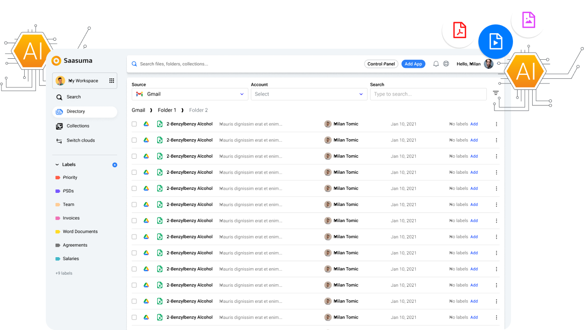 One AI workspace for all your emails, files, and systems. Saasuma connects every source in your digital ecosystem - emails, spreadsheets, and internal tools - so you can request what you need and take action instantly. Search, share, create, and manage, all from one powerful place, powered by AI.